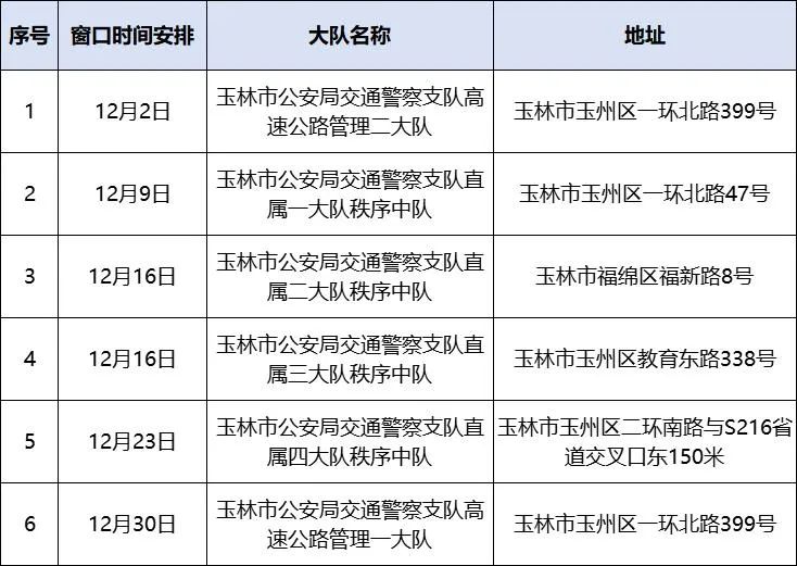 为满足群众周末办理交通违法业务的需求,提升广大企业和人民群众办事便利度,玉林市公安局交警支队2023年12月份开展每周六办理交通违法业务服务,现将有关事项通告如下: