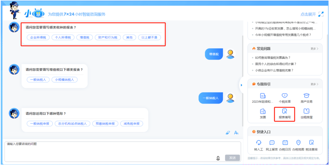 12366智能咨询平台——【专题指引】——【报表填写】。