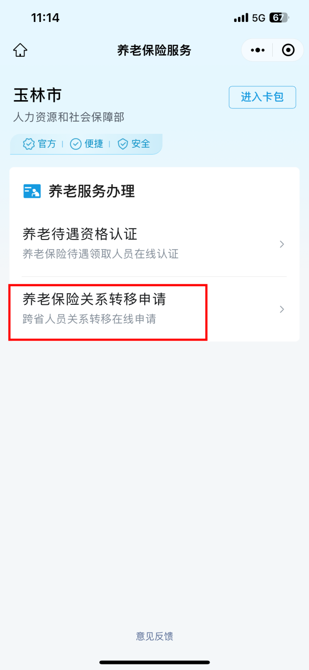 第一步:符合转移条件的申请人员首先在手机APP“广西人社”、微信/支付宝的“电子社保卡”小程序注册用户并登录,通过选择“城市服务”-“电子社保卡(人社部)”即可进入选择服务事项的界面