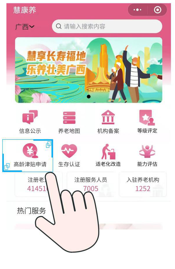 点击首页“高龄补贴申请”按钮