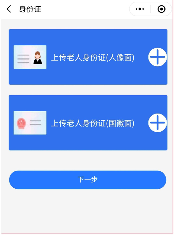 输入或拍照上传老人姓名、身份证号