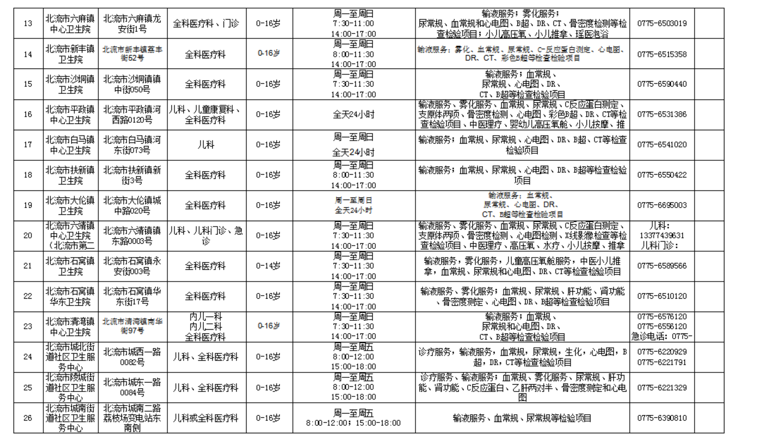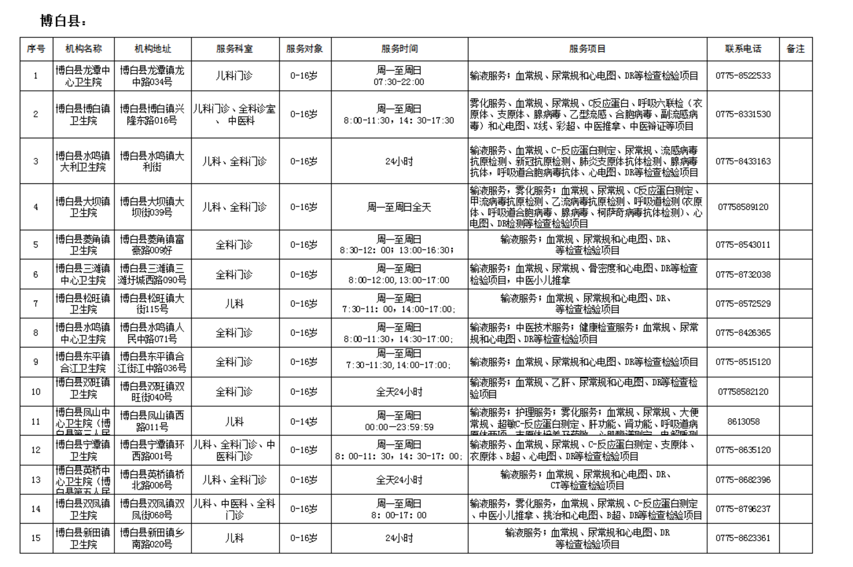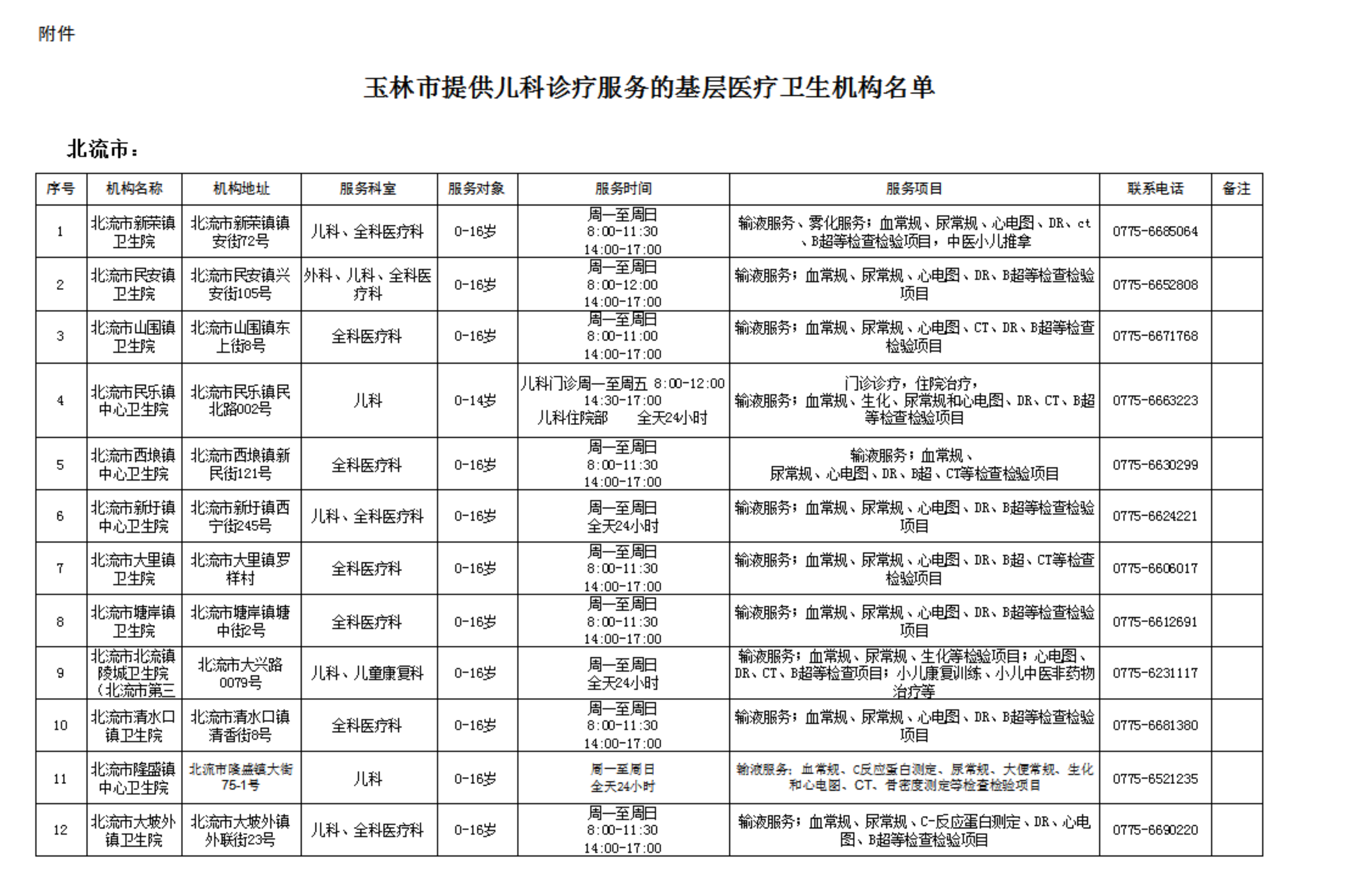 为保障儿童就近享受诊疗服务,现将玉林市提供儿科诊疗服务的基层医疗机构名单予以公示,方便群众有序就医。