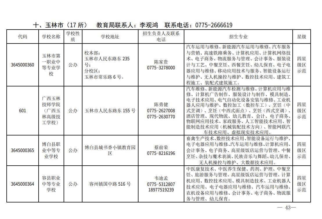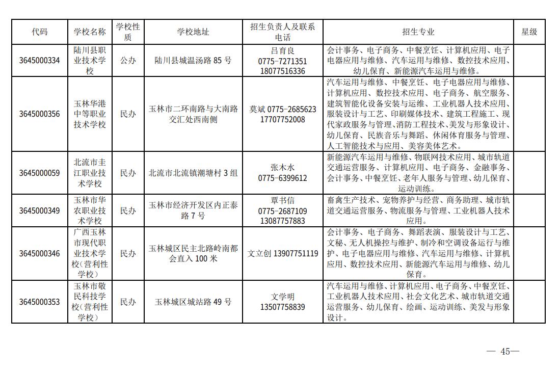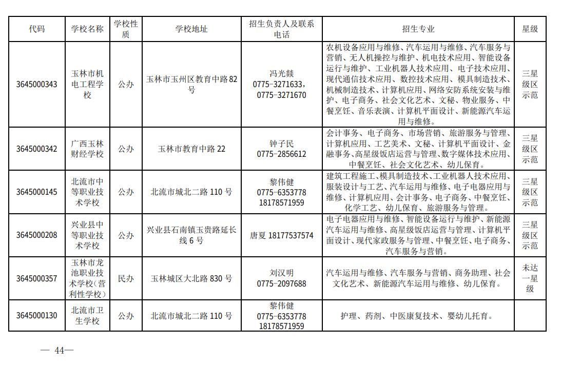 2023年度玉林市具有中等学历职业教育招生资格学校名单