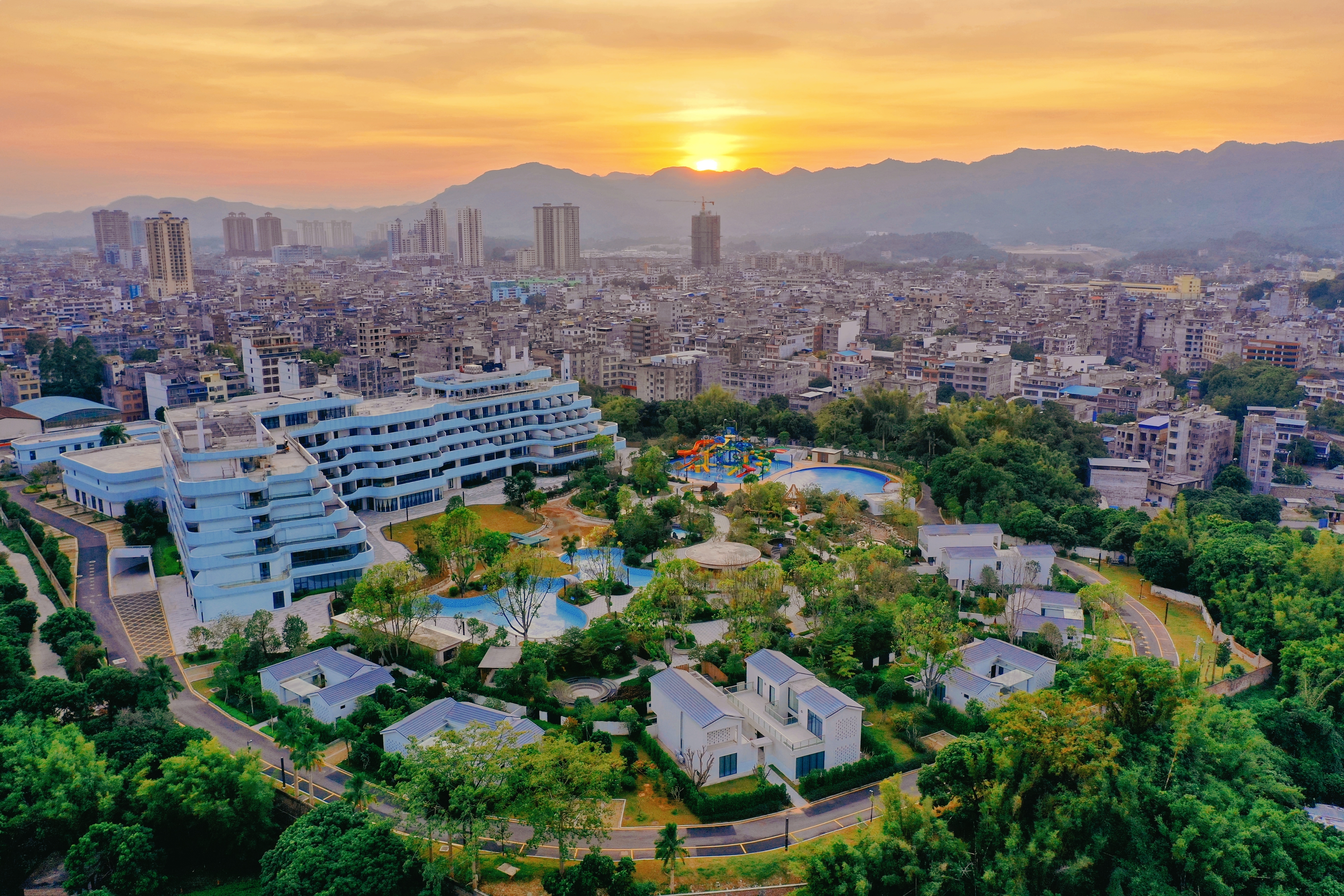 九龙山庄位于有“中国温泉之乡”之称的陆川县城,酒店住宿区有豪华客房300多间,包含主楼客房、汤院式别墅、合院式客房(在建)等房型;温泉区有生态池、加料池等40多个温泉泡池、1个游泳池以及3500多平方米的儿童水乐园;同时配套有宴会厅、会议室、中西餐厅、美食商业街等,满足客户休闲、度假、商务、宴会、游乐等各种活动需要。