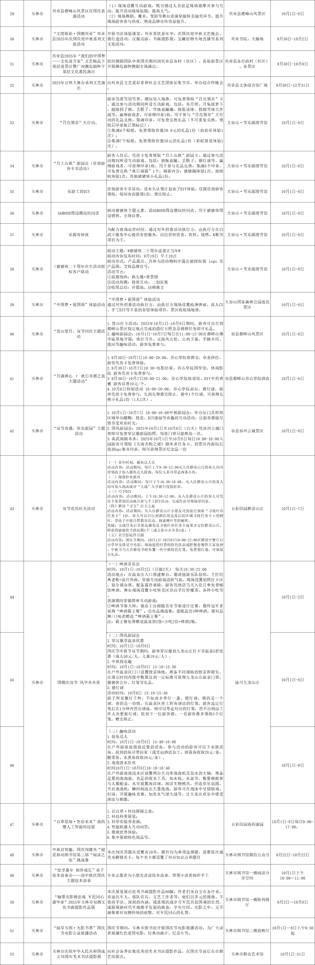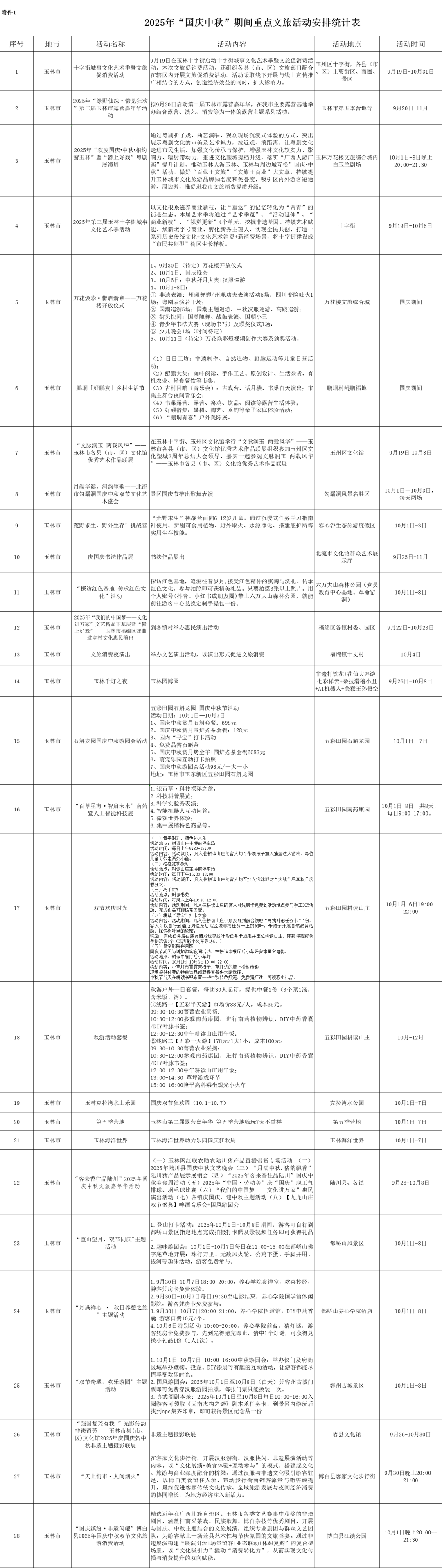 从十字街的城事文化艺术盛宴到大容山上的星辰露营,从万花楼的“万花焕彩·鬱启新章”到容州古城的欢乐游园……即将到来的“十一”黄金周,国庆中秋“双节”交汇,玉林精心策划涵盖景区焕新、潮玩游乐、传统民俗等多个板块的百余场文旅活动,诚邀八方游客共度佳节,畅享“岭南都会”的独特魅力。