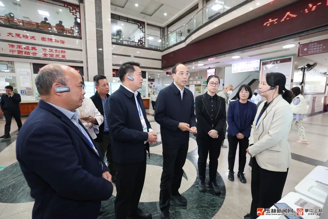 3月11日,市长张惠强在玉林城区调研督导中医药传承创新发展示范项目推进、医保基金管理突出问题专项整治和重大项目建设等工作。图为张惠强在玉林市中医院调研。