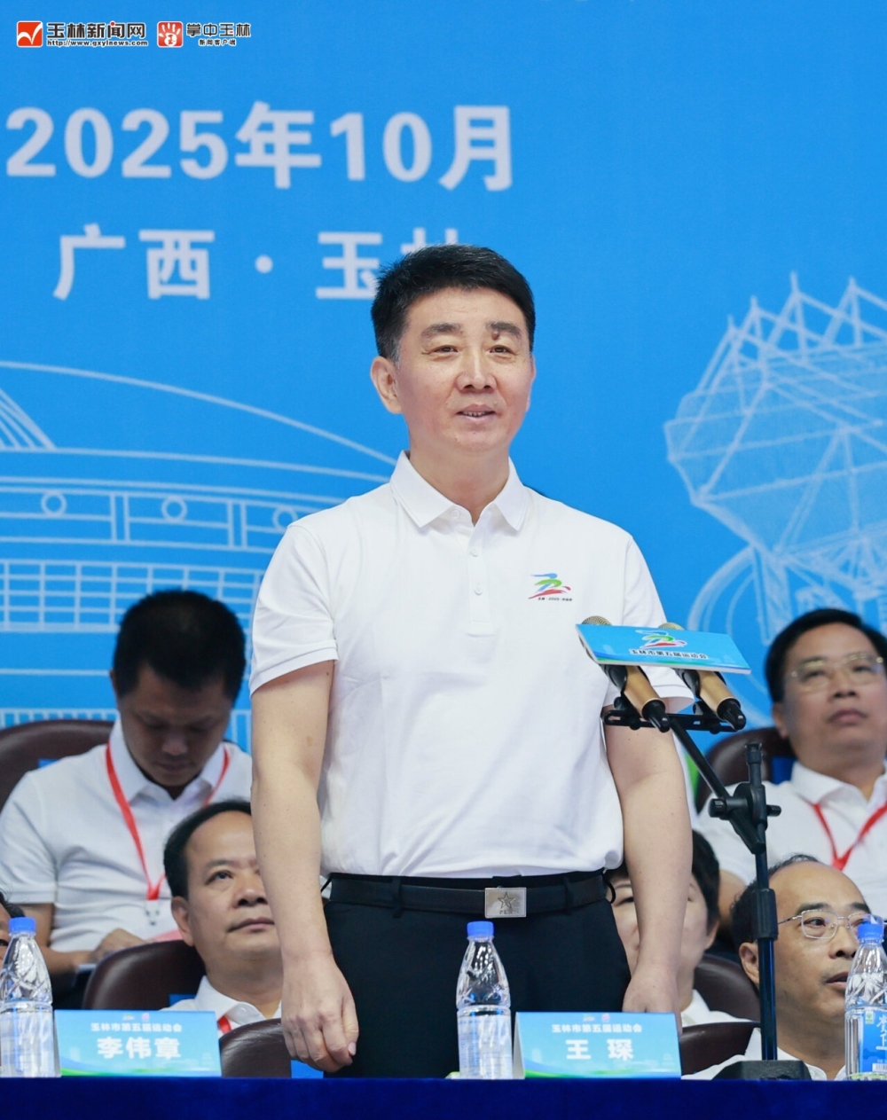 10月22日,玉林市第五届运动会开幕式在市体育馆举行。市委书记王琛出席并宣布玉林市第五届运动会开幕。