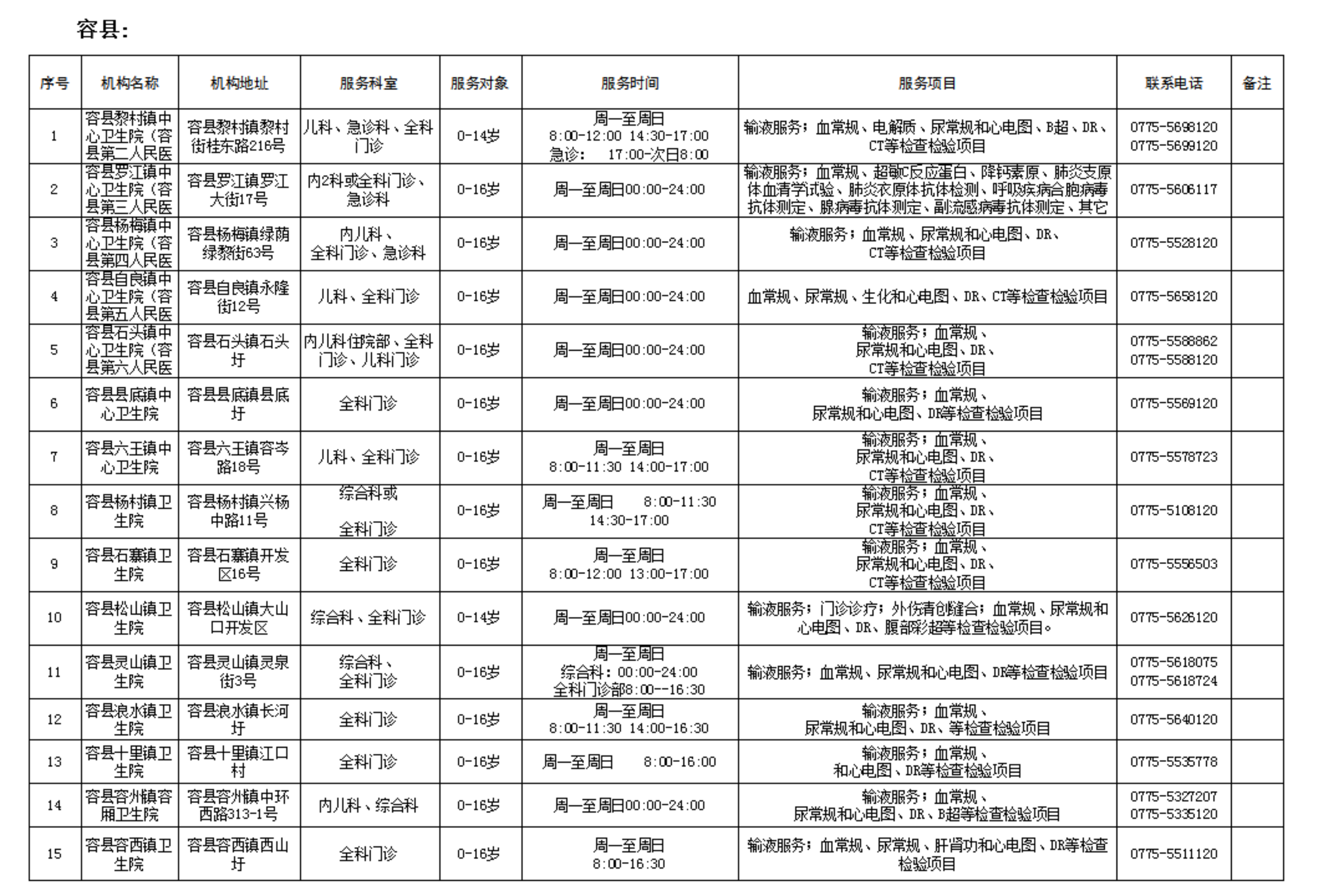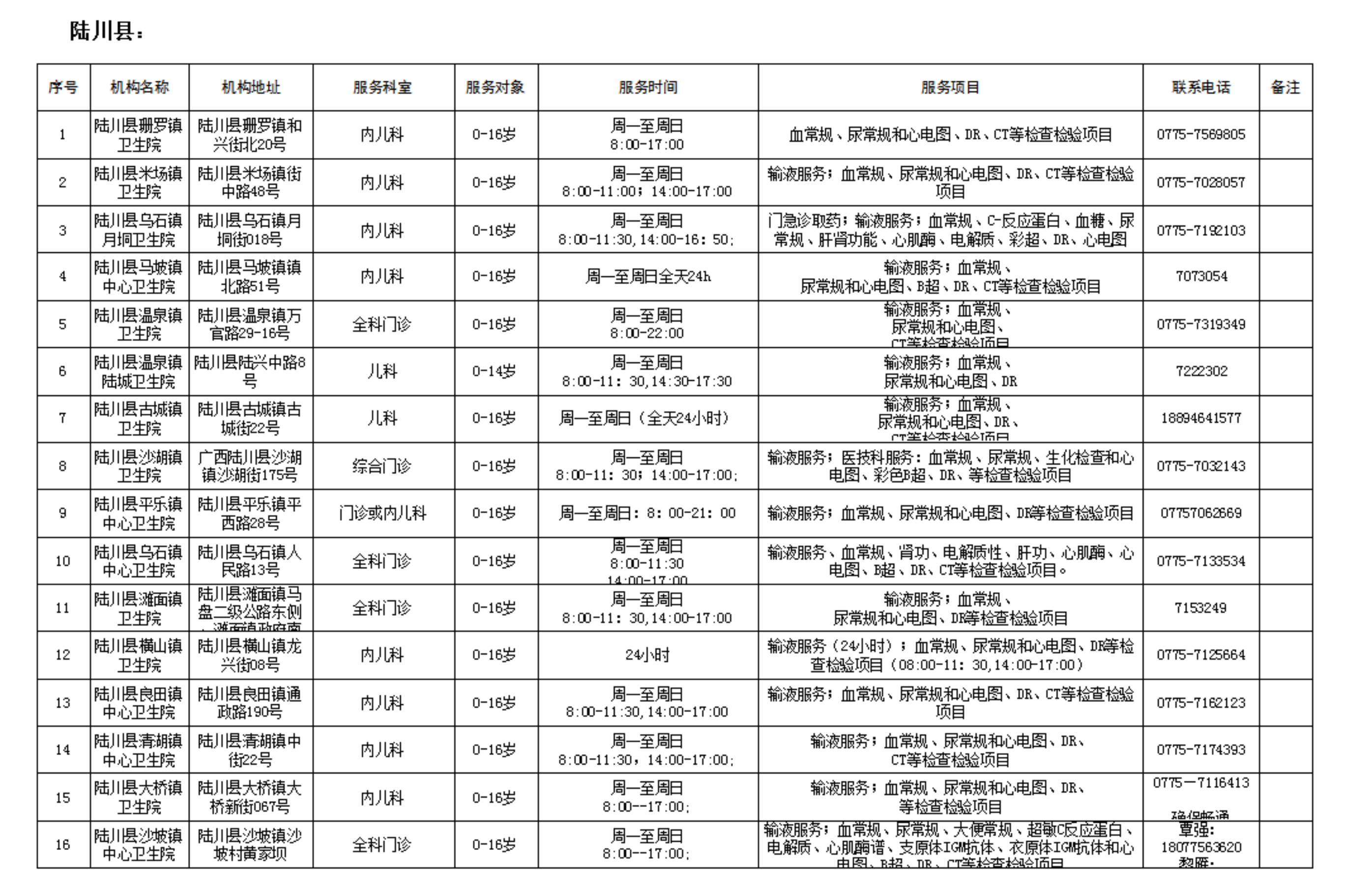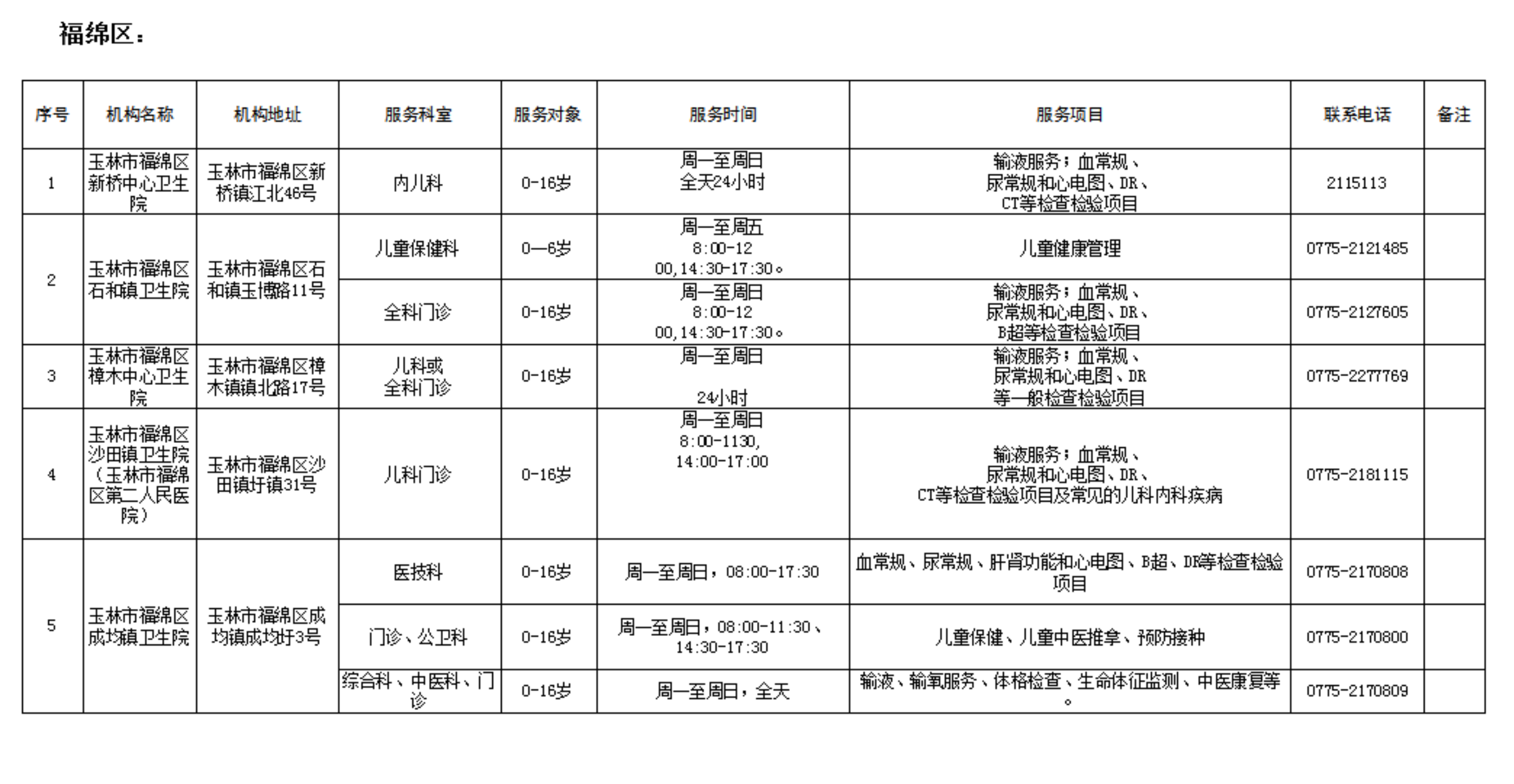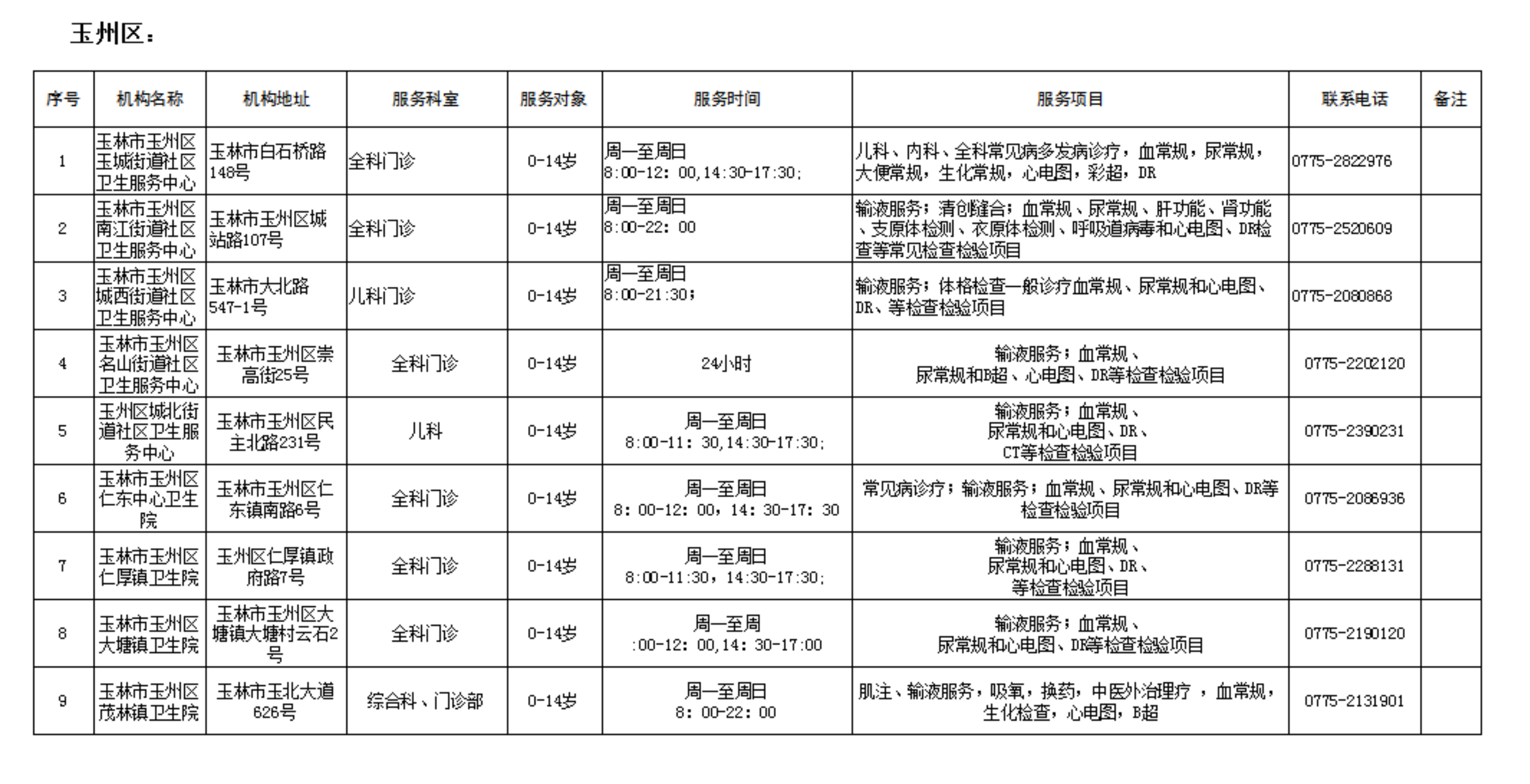 为保障儿童就近享受诊疗服务,现将玉林市提供儿科诊疗服务的基层医疗机构名单予以公示,方便群众有序就医。