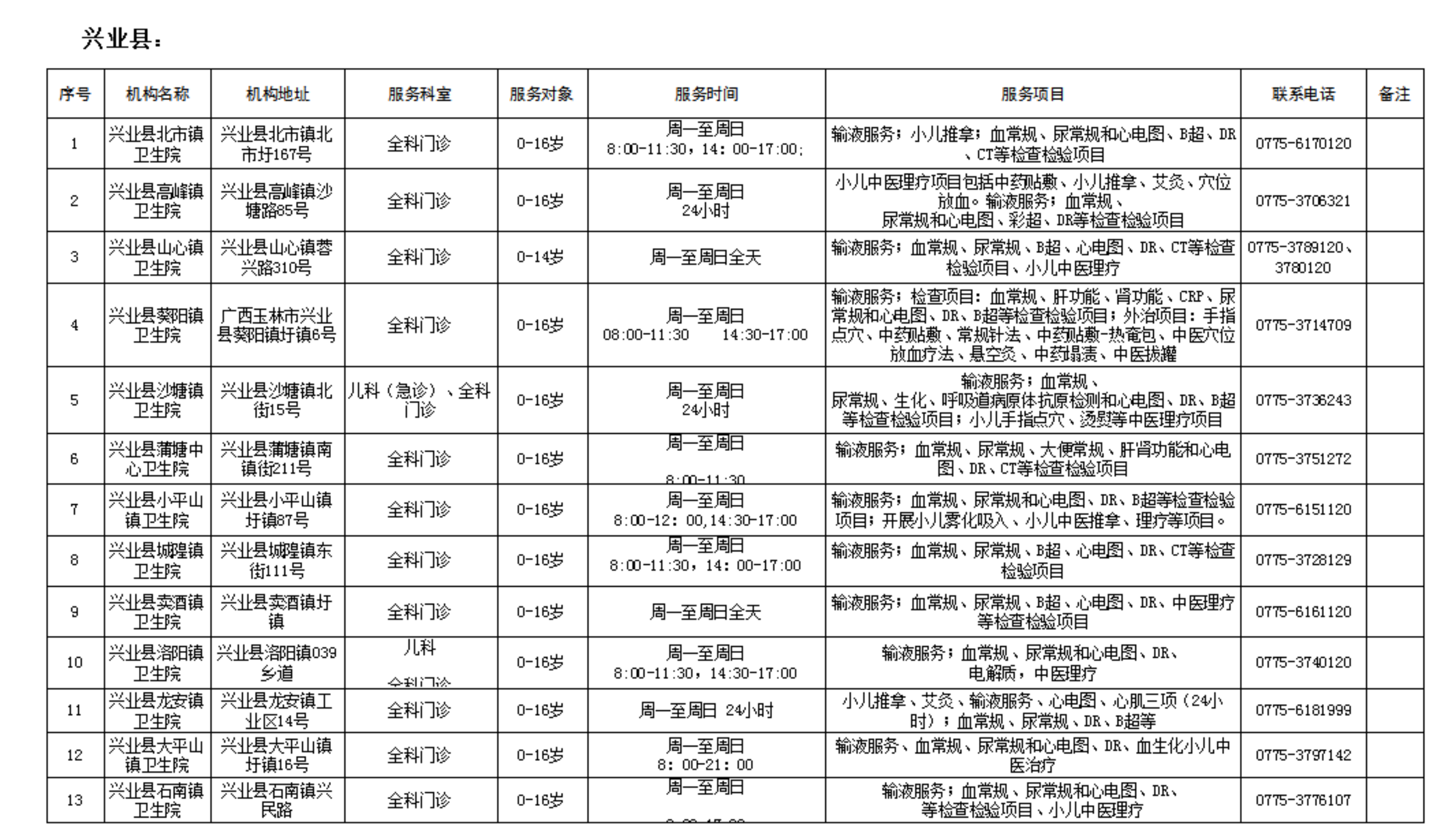 附件:玉林市提供儿科诊疗服务的基层医疗卫生机构名单