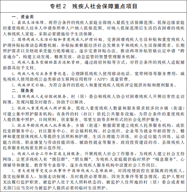 (一)完善残疾人社会保障制度,为残疾人提供更加稳定更高水平的民生保障。