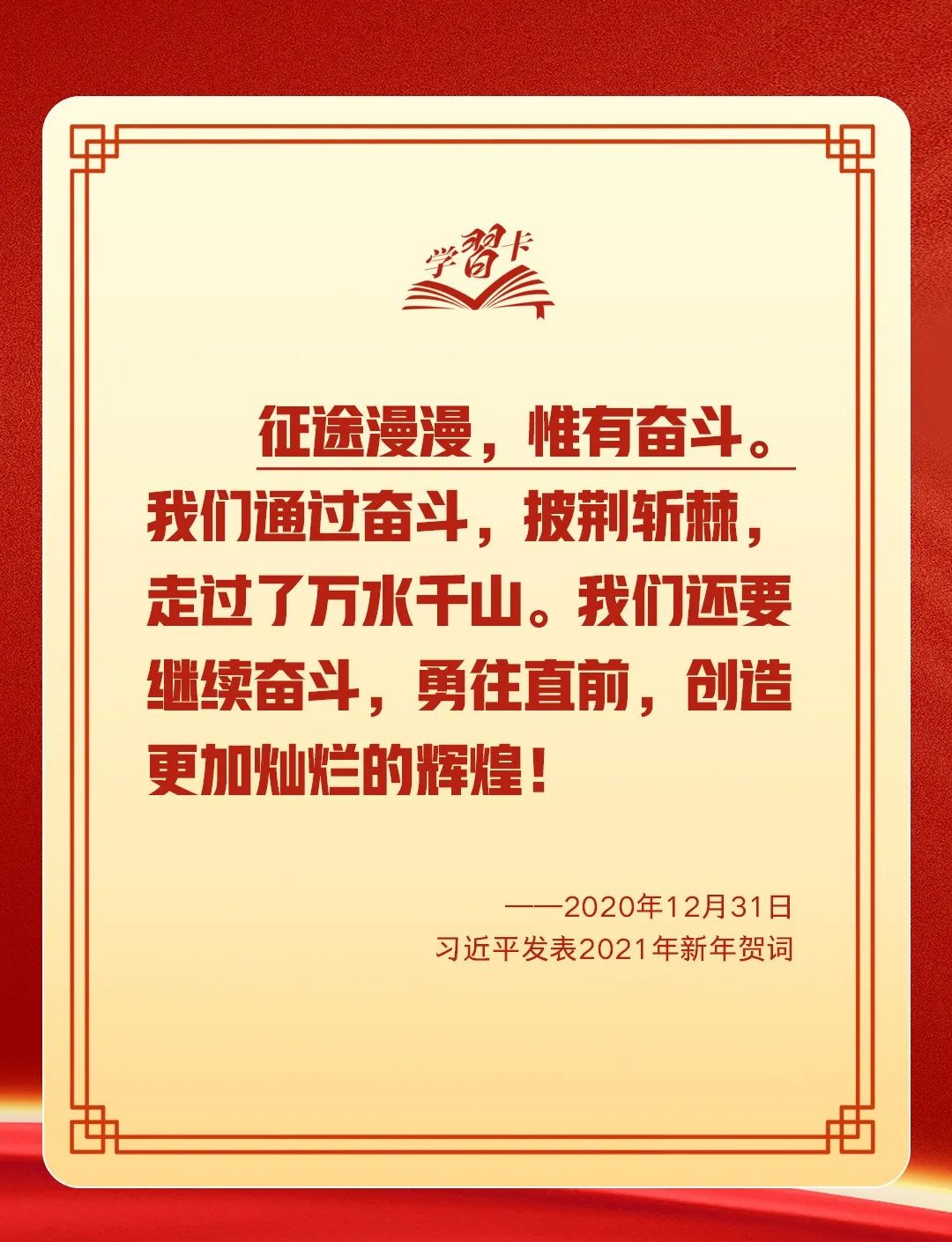 习近平总书记点赞无数为梦想拼搏的劳动者、建设者、创业者,直抵人心的话语,吹响新一年风雨兼程再出发的奋进号角。新春开工之际,一起学习↓
