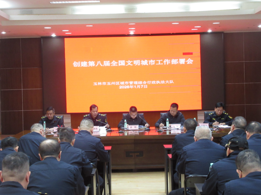 2026年1月7日下午,玉林市玉州区城市管理综合行政执法大队组织中层以上领导干部召开创建第八届全国文明城市工作部署会。
