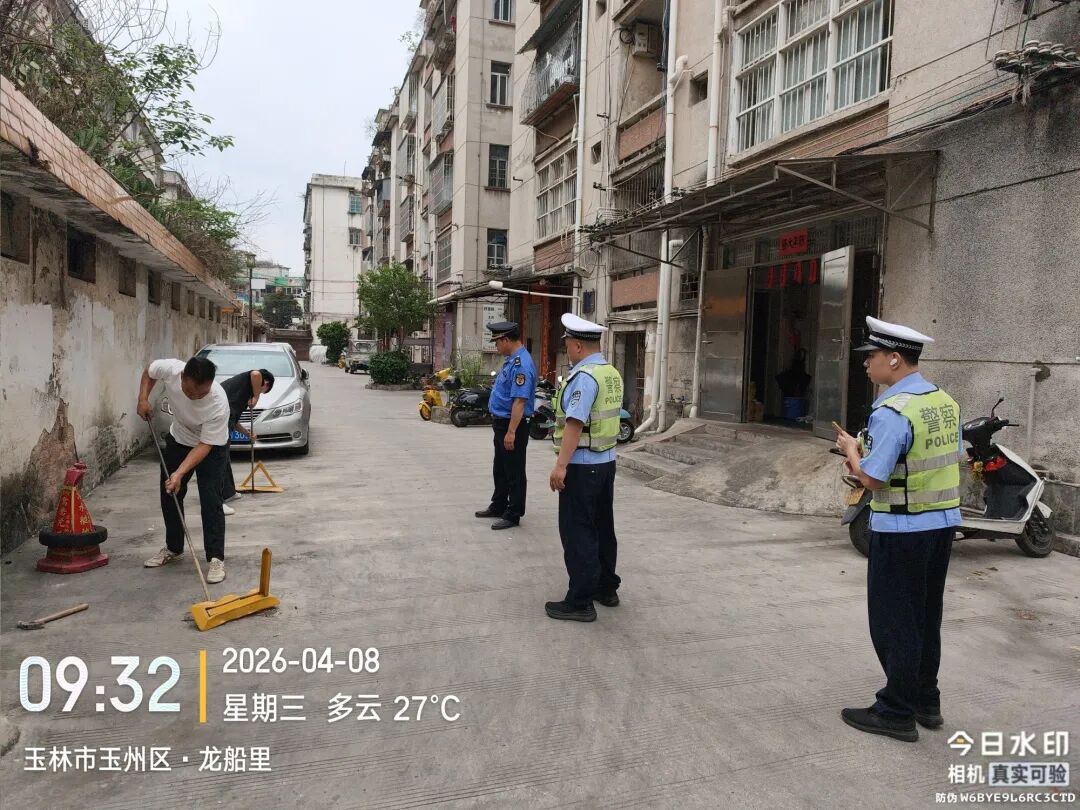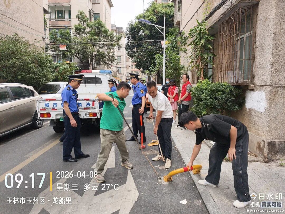 4 月 8 日,玉州区城管大队联合交警部门、东成社区,对龙船里区域逾期未自行整改的违规地锁进行全面清理。此次行动共清理违规地锁 66 把,有效还路于民,消除了安全隐患,赢得了现场居民的一致好评。