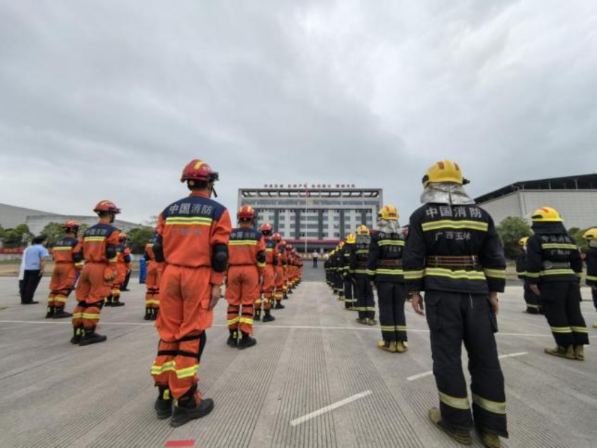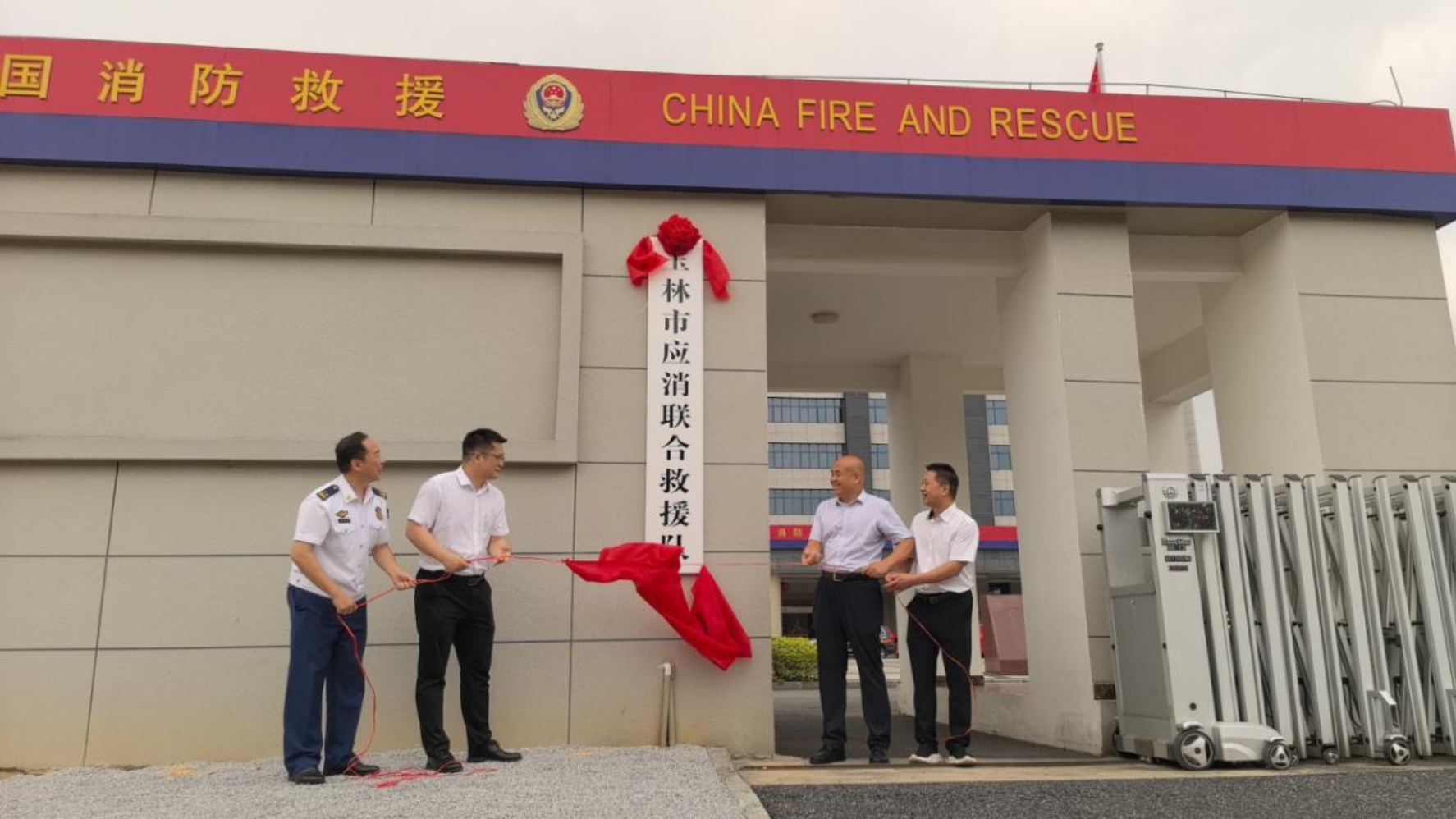 ▲演练现场,同步举行“玉林市应消联合救援队”揭牌仪式,宣告玉林市应消联合救援队正式成立,玉林市“应消一体化”应急救援工作进入新阶段。
