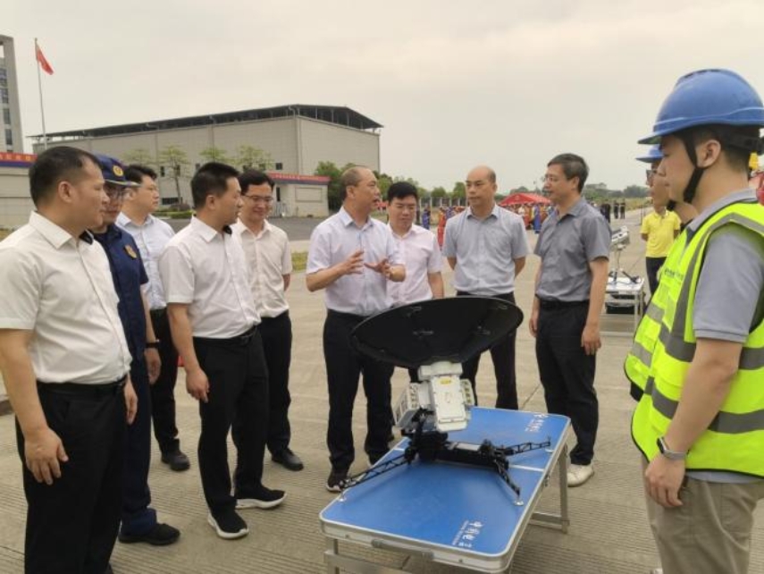 市政府副秘书长胡自力代表市政府观摩了演练,市应急管理局、市消防救援支队、市通信管理办公室主要领导和分管领导;福绵区应急管理局主要领导和分管领导,中国联通玉林分公司、中国移动玉林分公司、中国电信玉林分公司、中国铁塔玉林分公司、广西广电网络玉林分公司、玉林供电局分管领导,及各单位相关业务科室(部门)负责人,玉林市无人机协会、广西玉消科技有限公司、广西大雄鹰科技有限公司有关负责人参加了演练。