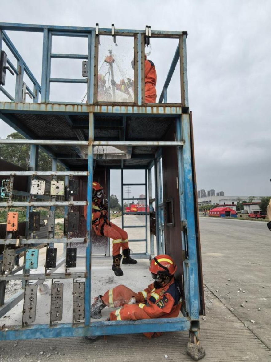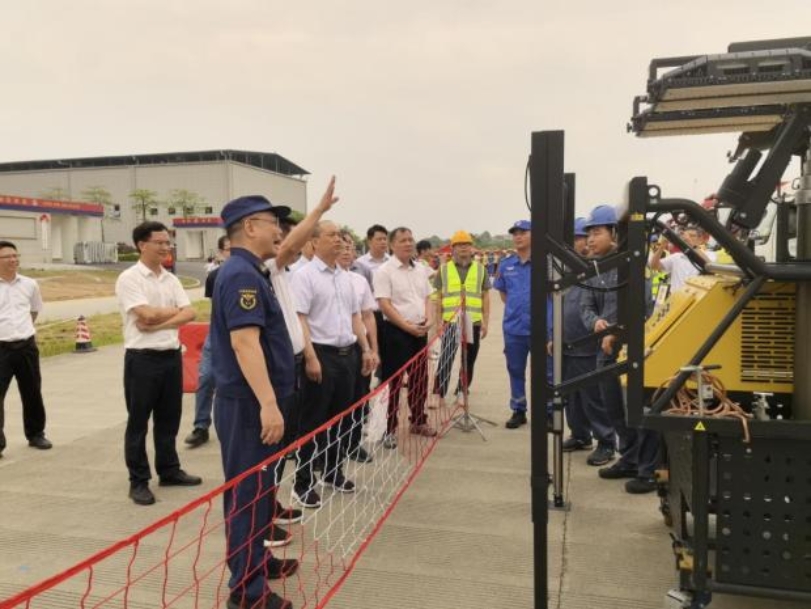 演练在福绵区某地举行。演练开展了多手段灾情信息上报、前方应急指挥部搭建、应急集结出动及携装徒步突进(含通信运营企业5G高质量卫星背包)、无人机场灾情空中侦察、自组网应急通信保障、有线通信线路抢修、无线通信网络恢复、应急供电保障及现场照明、多手段现场侦察处置、水面及水下应急侦察、消防救援人员定位管控、侦察机器狗纵深侦察作业等13个项目。