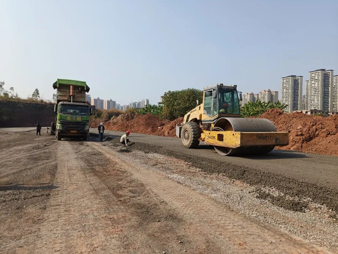 当前,位于玉林高新区的九岭路、石棠路、新高路等道路工程正在加紧施工,为实现2026年春节前竣工通车的目标,建设者利用当前晴好天气提高施工节奏,让周边民众尽早享受新建道路带来的便捷红利。
