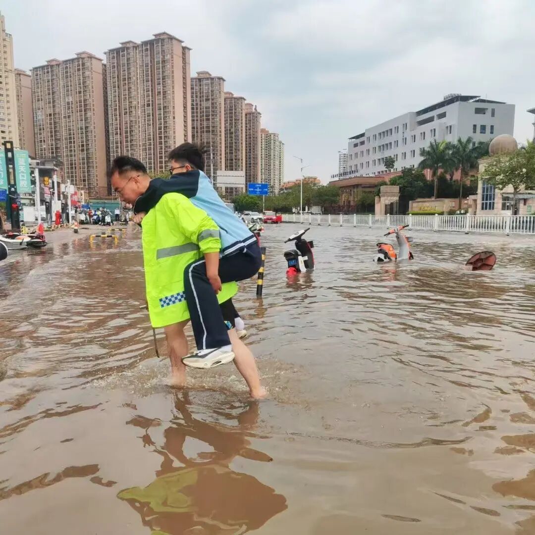 暴风骤雨肆虐,温情时刻同步上演。在玉东二小门口,路面积水阻断通行,不少上学孩童驻足为难。工作人员见状主动上前,俯身背起学生,小心翼翼蹚过深水,暖心护送孩子们平安抵达校园门口。风雨之中,一幕幕暖心背影,绘就了城市最动人的风景线。