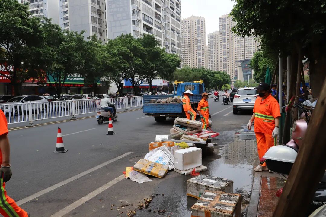 为持续深化城市精细化管理,切实优化辖区市民居住与出行环境,近期,玉林高新区聚焦部分小区周边市容乱象突出问题,精心部署、精准发力,组织开展占道经营专项整治行动,坚持“疏堵结合、标本兼治”原则,全力攻坚环境顽疾,为辖区居民群众营造了整洁、文明、有序、安全的城市空间。