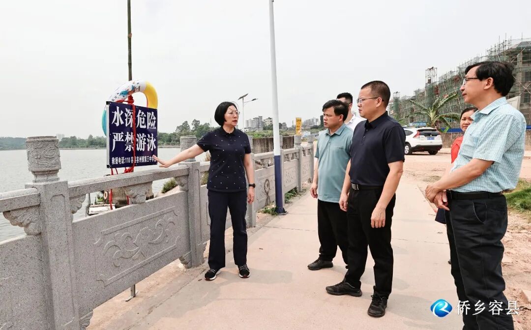 ▲县委书记罗莉在容州镇绣江河畔督导检查防溺水工作