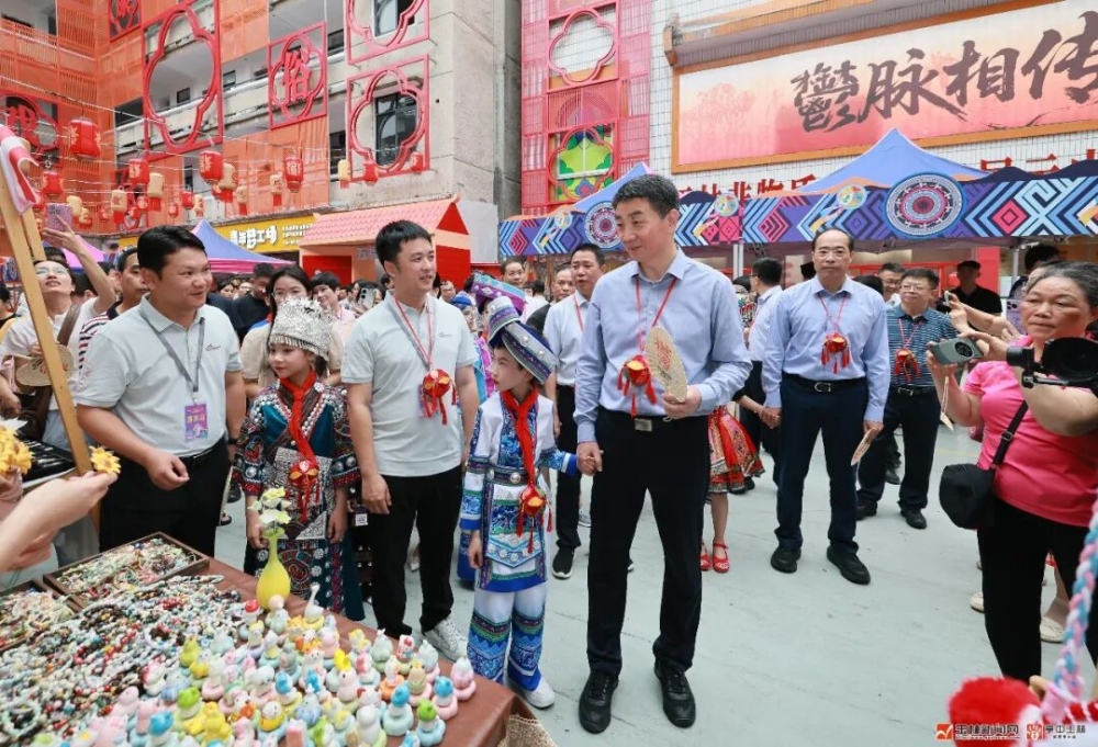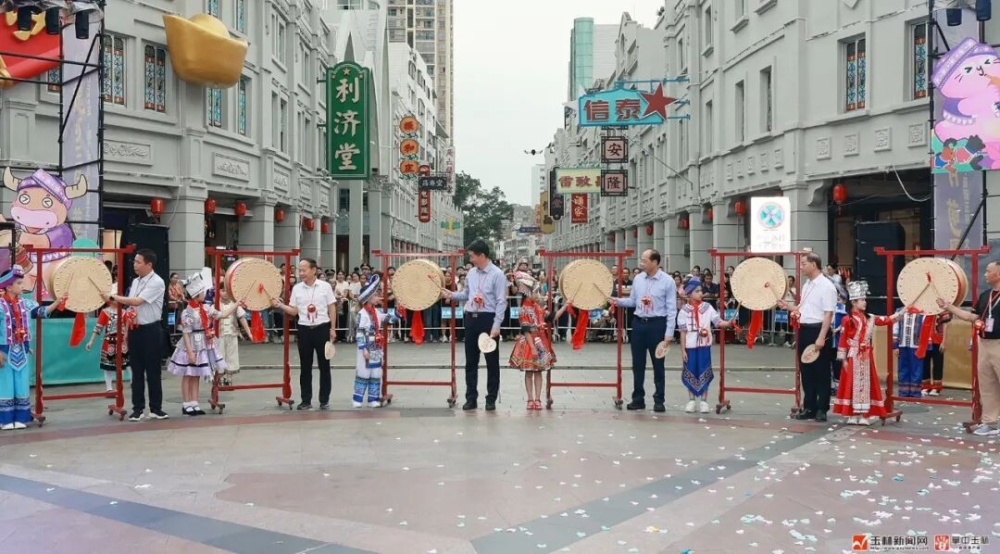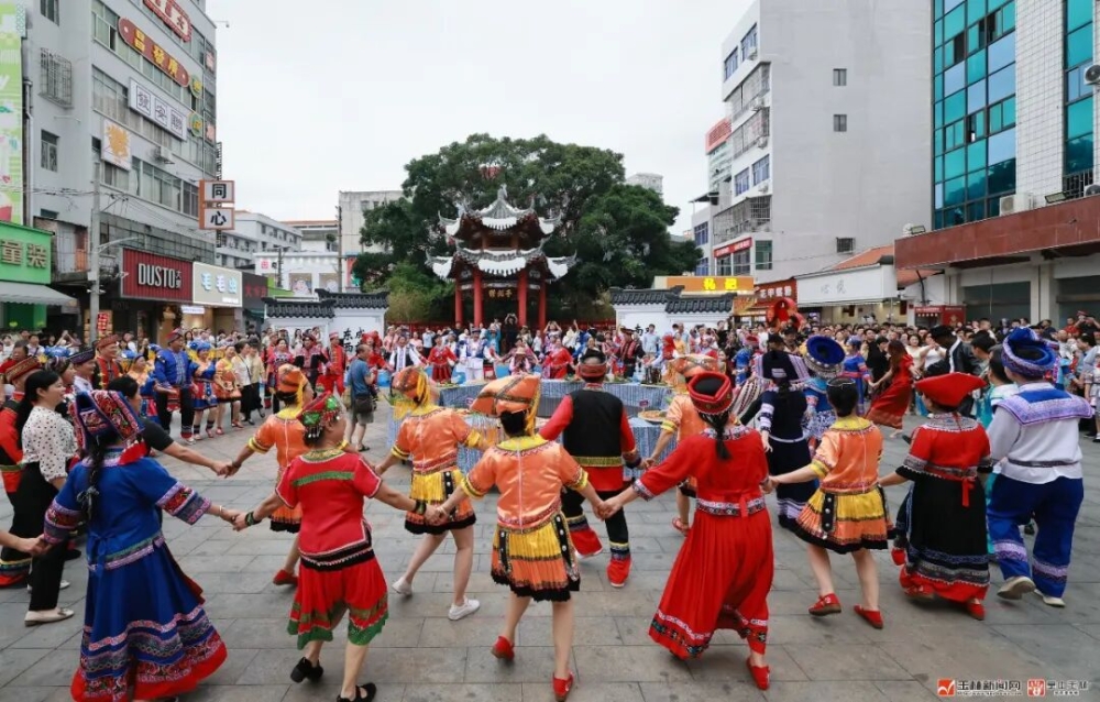 随后,领导嘉宾与市民一同跟随巡游队伍,沿解放路步行前往玉林大厦舞台、非遗小院、二电广场、Y-park小院等地,沿途观看山歌对唱,参观非遗集市,欣赏民族舞蹈表演、民族服装秀,零距离触摸非遗脉搏、感受民族风情,拥抱玉林独特的城市文化魅力。