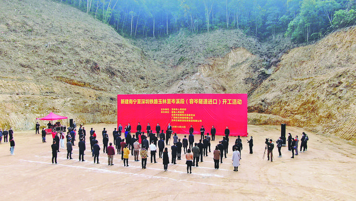 南宁至深圳高速铁路玉林至岑溪段(容岑隧道进口)开工现场。(本报记者 张翔 摄)
