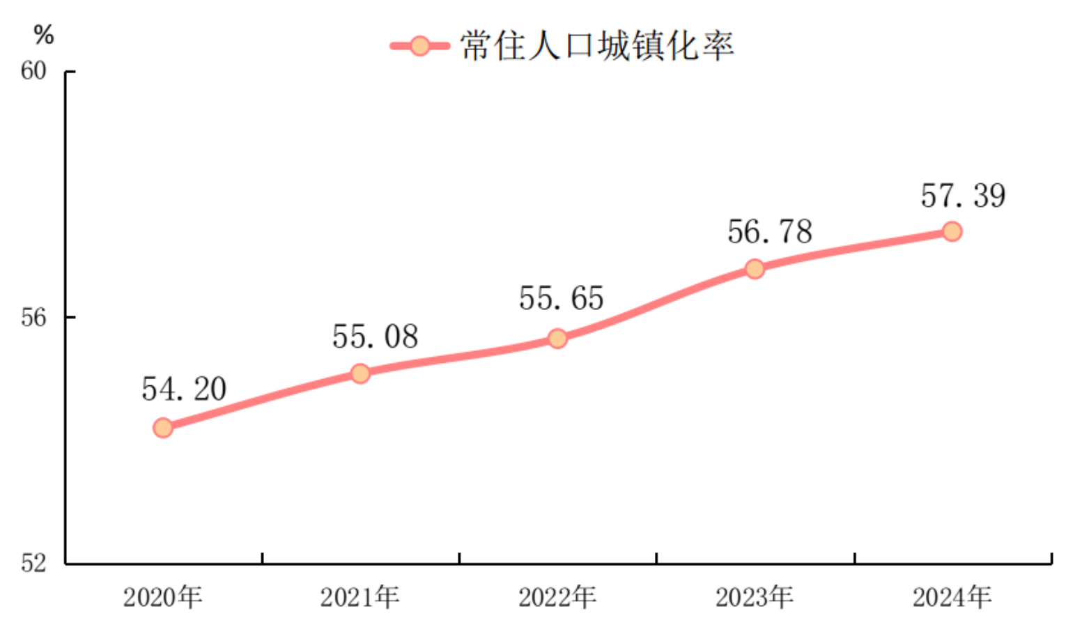 图3 2020—2024年年末广西常住人口城镇化率