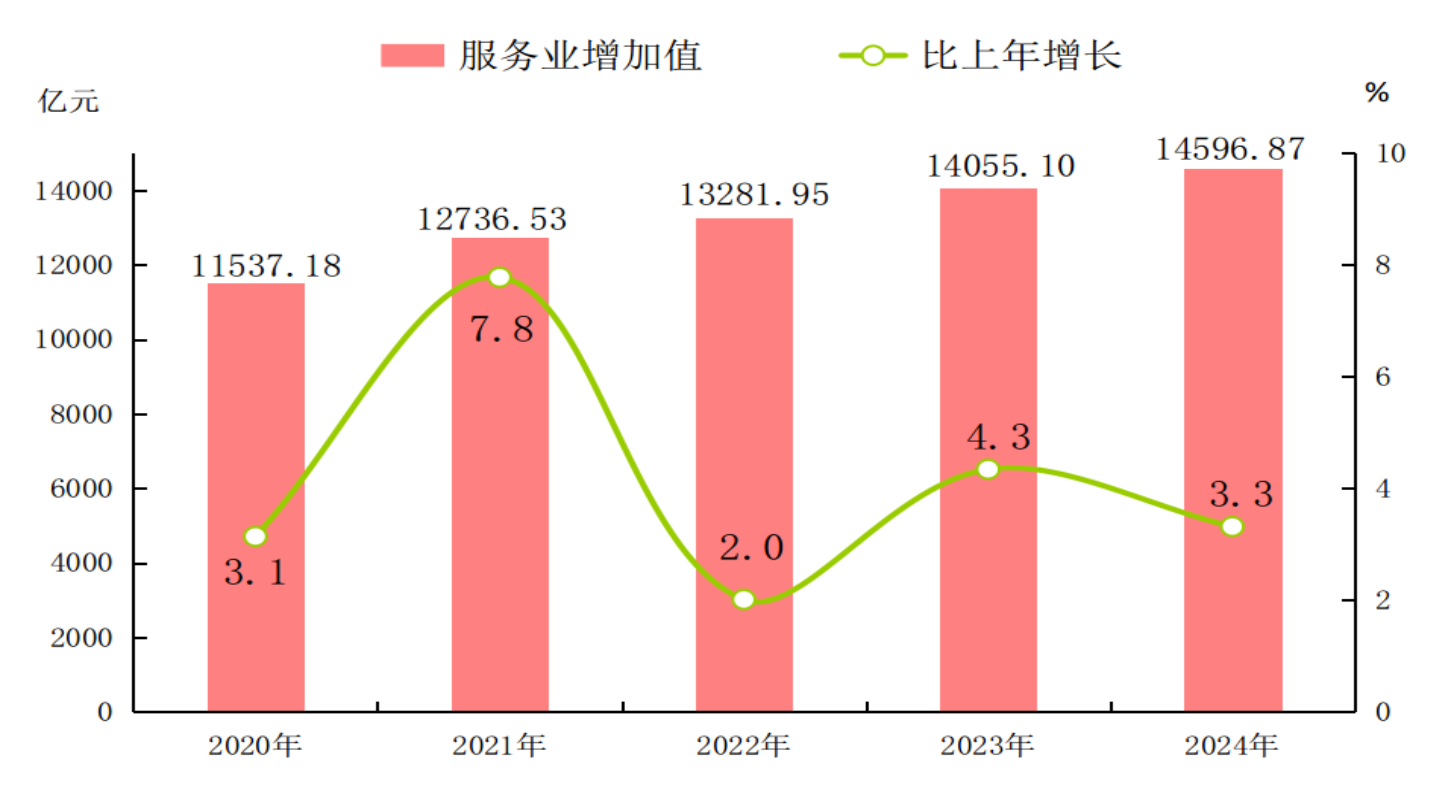 [10]规模以上服务业统计范围包括:年营业收入2000万元及以上的交通运输、仓储和邮政业,信息传输、软件和信息技术服务业,水利、环境和公共设施管理业,卫生行业法人单位;年营业收入1000万元及以上的房地产业(不含房地产开发经营),租赁和商务服务业,科学研究和技术服务业,教育行业法人单位;以及年营业收入500万元及以上的居民服务、修理和其他服务业,文化、体育和娱乐业,社会工作行业法人单位。2024年规模以上服务业企业财务指标增速按可比口径计算。