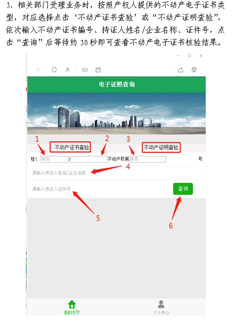 各部门、机构、单位等需要对不动产电子证照的真伪和有效性进行查验的,必须在确保由权利人本人出示相关身份证明、不动产权证书号或不动产登记证明号的前提下,通过以上查验渠道对其不动产权利和登记信息进行验证。