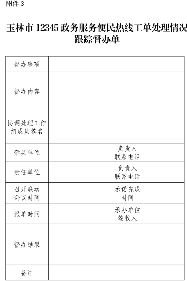 3.玉林市12345政务服务便民热线工单处理情况跟踪督办单