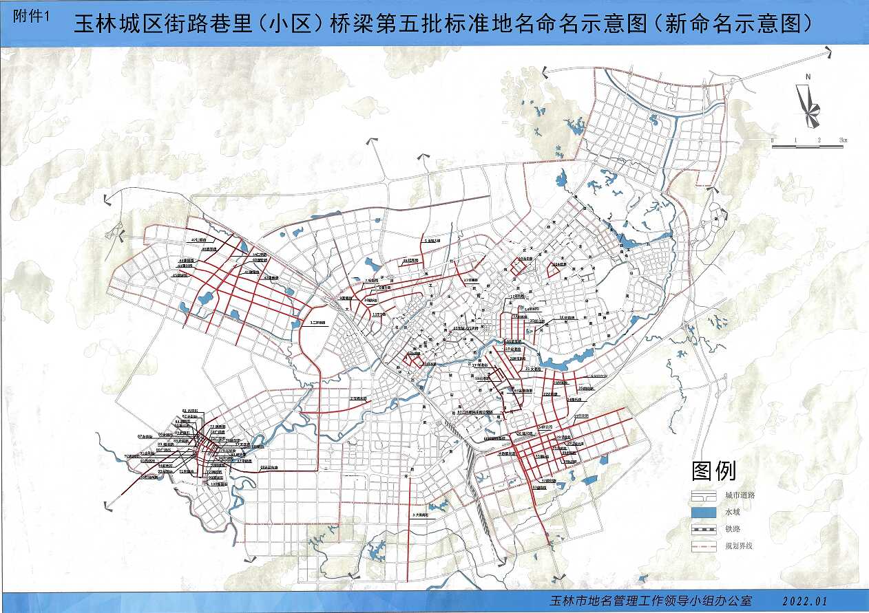 附件:1.玉林城区街路巷里(小区)桥梁第五批标准地名命名示意图(新命名示意图)