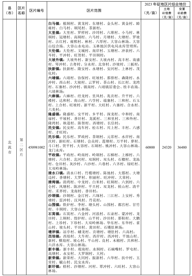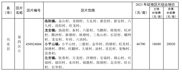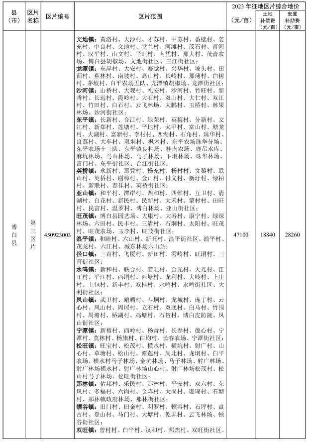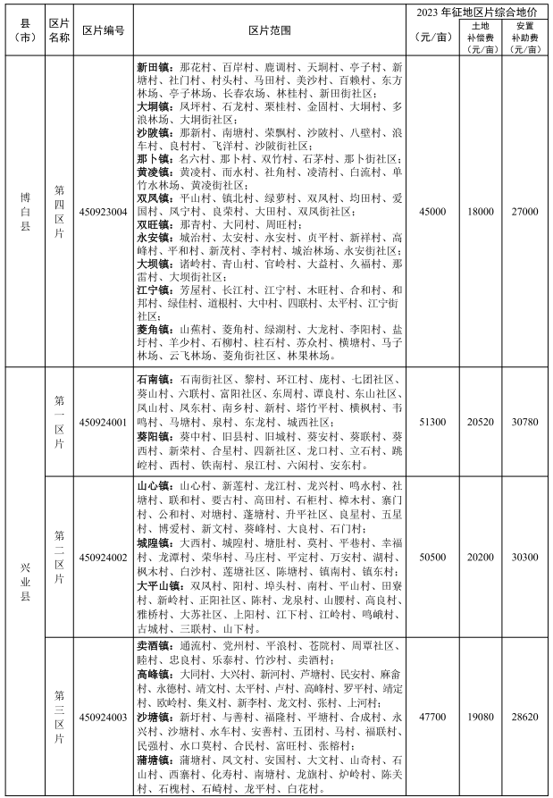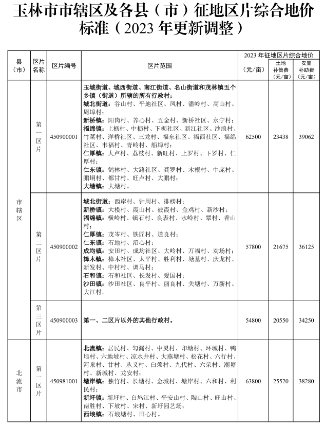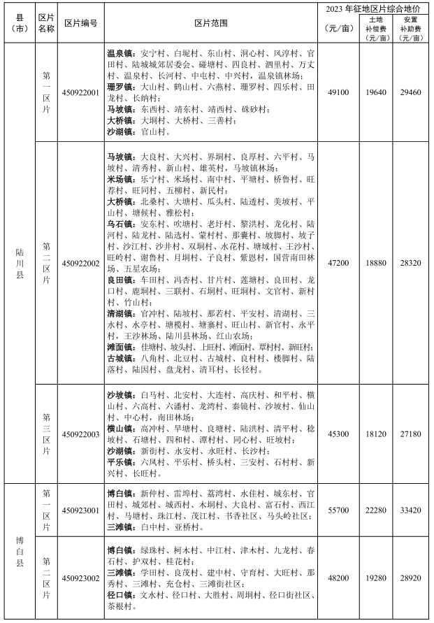 附件:玉林市市辖区及各县(市)征地区片综合地价标准(2023年更新调整)