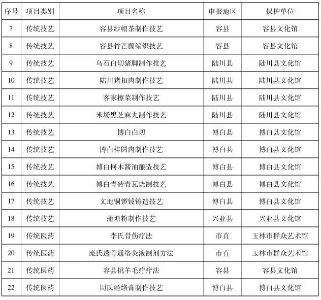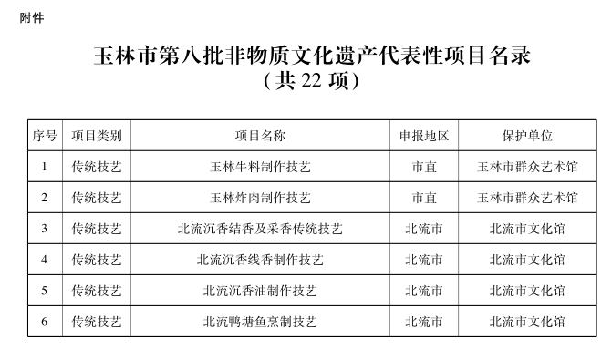 附件:玉林市第八批非物质文化遗产代表性项目名录(共22项)
