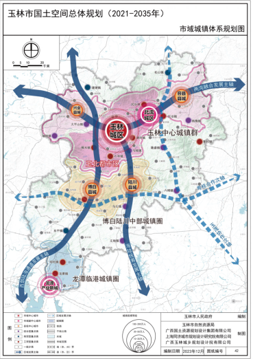 两圈:龙潭临港海陆统筹城镇圈及博白陆川中部协同发展城镇圈。通过两大城镇圈建设,构建玉林出海通道与出海新门户,推动玉北都市区向海发展。