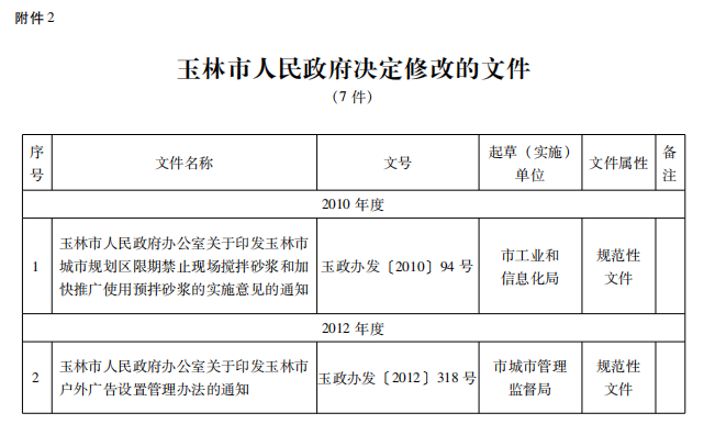 2. 玉林市人民政府决定修改的文件(7件)