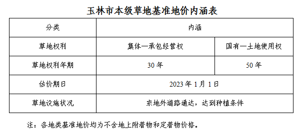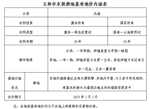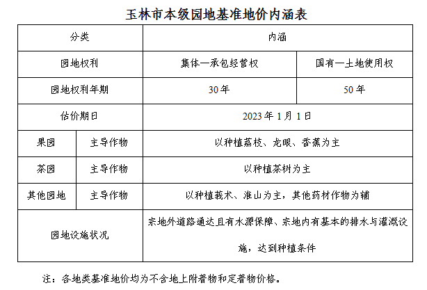 (二)设定了玉林市本级耕地园地林地草地基准地价内涵。