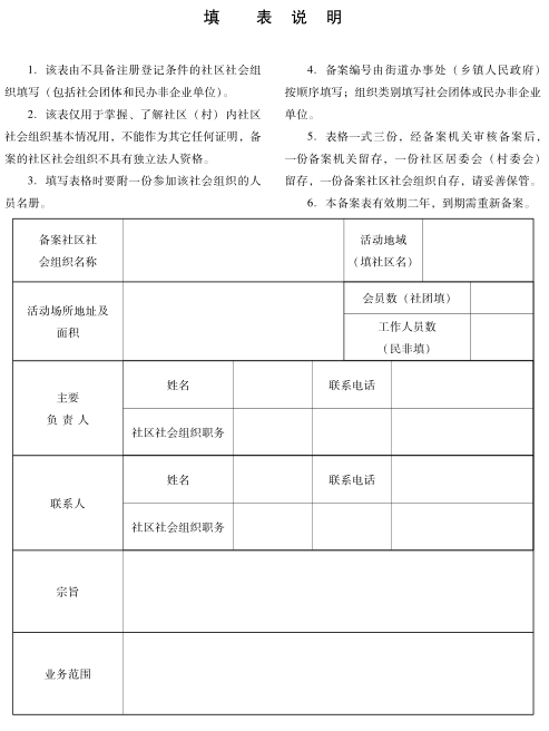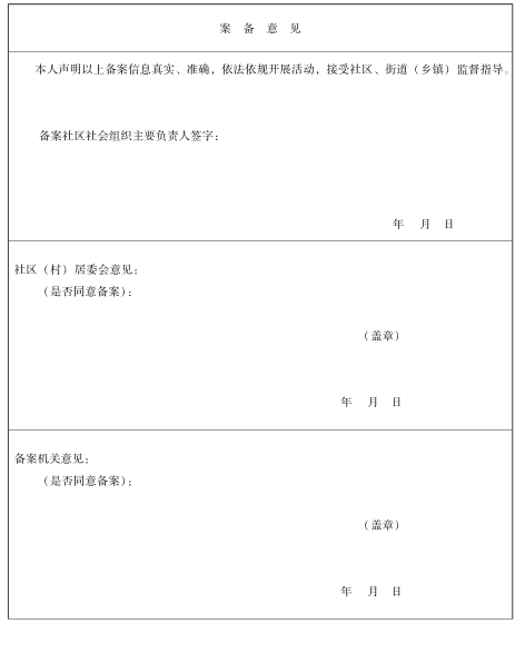 (一)《玉林市社区社会组织备案申请表》;
