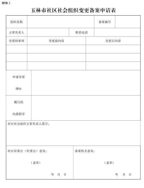 2.玉林市社区社会组织变更备案申请表