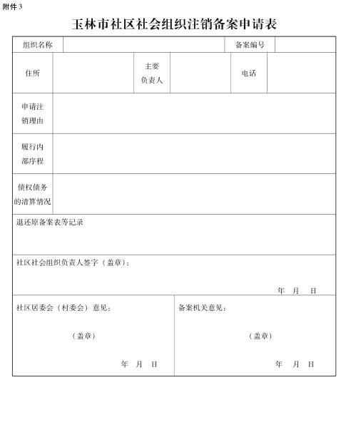 3.玉林市社区社会组织注销备案申请表