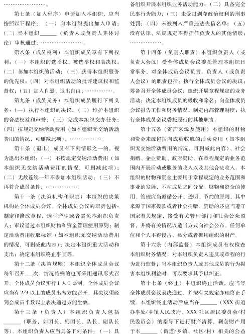 第二十四条 社区社会组织应建立民主议事制度,制定和修改章程、选举或罢免负责人等重要事项应按章程办理。
