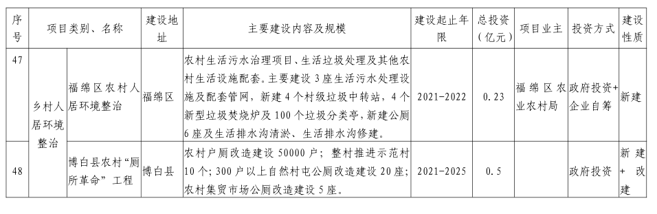 (二)积极协调农村公共服务设施的完善和农村基础设施的建设,加强农村生态环境综合整治。进一步协调完善“户分、村收、镇运、县处理”的农村垃圾分类处理机制,不断提高农村垃圾分类处理率。持续开展农村“厕所革命”整村推进和户厕改造工作,推广厕所粪污“两次处理,两次利用,实现两化”的“三个两”生态循环治理模式,不断提高户用无害化卫生厕所普及率;支持有条件的村屯开展厕所粪污无害化处理并资源化利用。共同推广三级化粪池(氧化塘)和人工湿地治理、动力或湿地加动力污水处理项目的建设,努力提高农村生活污水处理率。协力解决重点河流和水源水库的水污染问题。健全村庄基础设施建管长效机制,明确各方管护责任,鼓励地方将管护费用纳入财政预算。