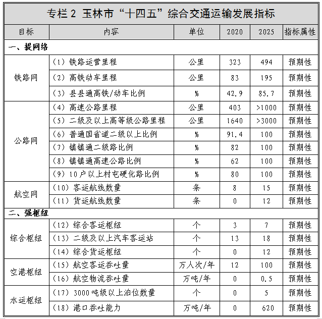 “十三五”期间,玉林市综合交通运输发展主要指标完成情况如下表: