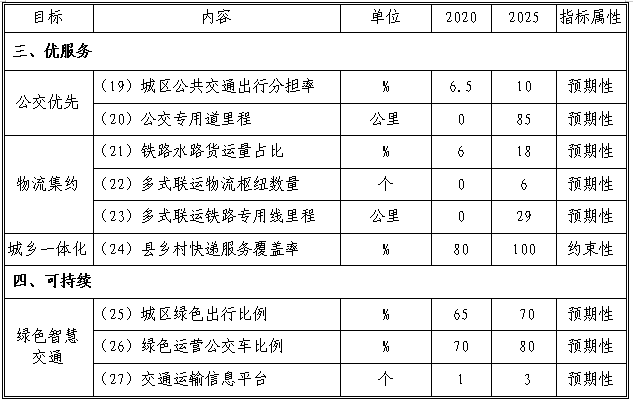 积极发展绿色交通方式。构建多层次一体化公共交通体系,争取城区绿色出行比例达到70%以上。持续推进大宗货物中长距离“公转铁、公转水”。鼓励运输企业规模化、集约化发展,加强货源组织和运力调配,降低车船空驶率,提高运输效率。