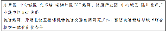加快玉林北站至机场轨道交通前期工作研究论证。统筹线路站点布局,与玉林北站、福绵机场等综合交通枢纽进行一体化衔接,打造空铁轨联运枢纽,实现高铁网、城际铁路网、市郊铁路网、轨道交通网“四网”融合发展,基本形成综合交通一体化出行服务。