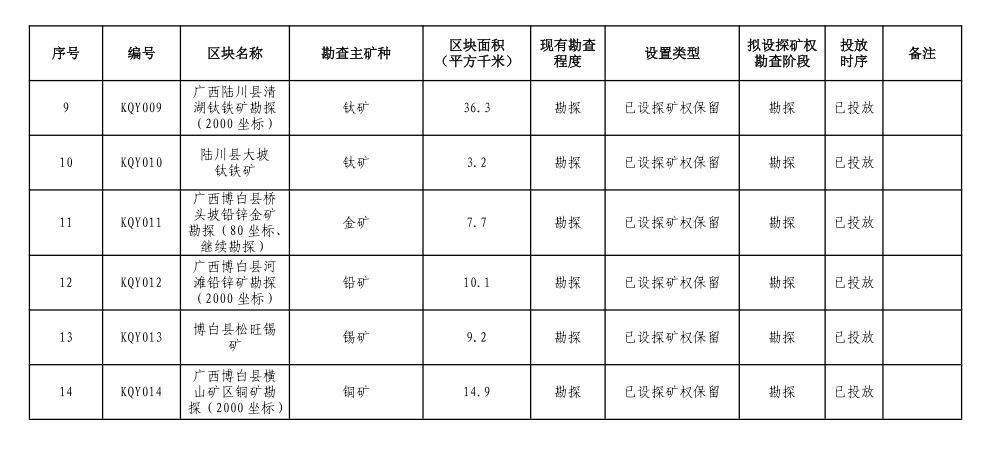 1.博白县松旺-陆川米场钨钼多金属矿重点勘查区。