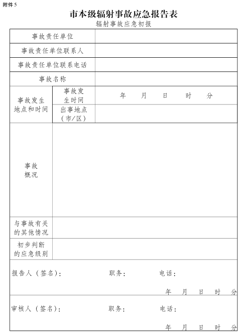 5.市本级辐射事故应急报告表