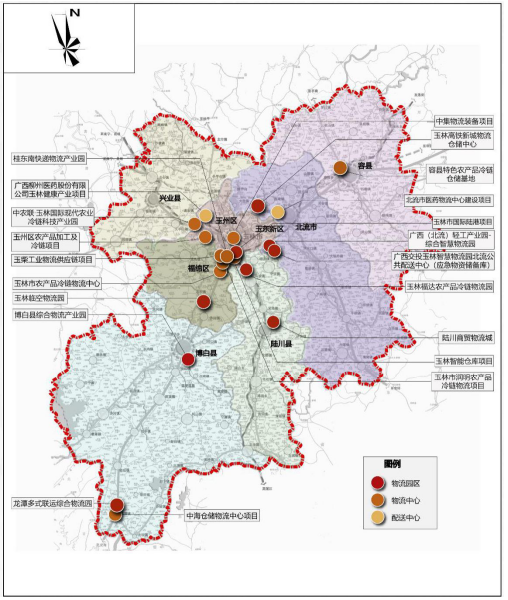 图3-1 玉林市物流节点空间布局图