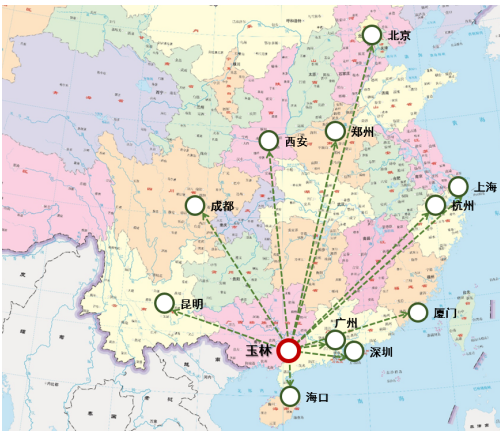 图3-6 玉林市航空航线示意图