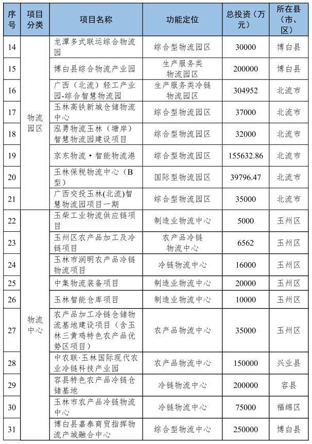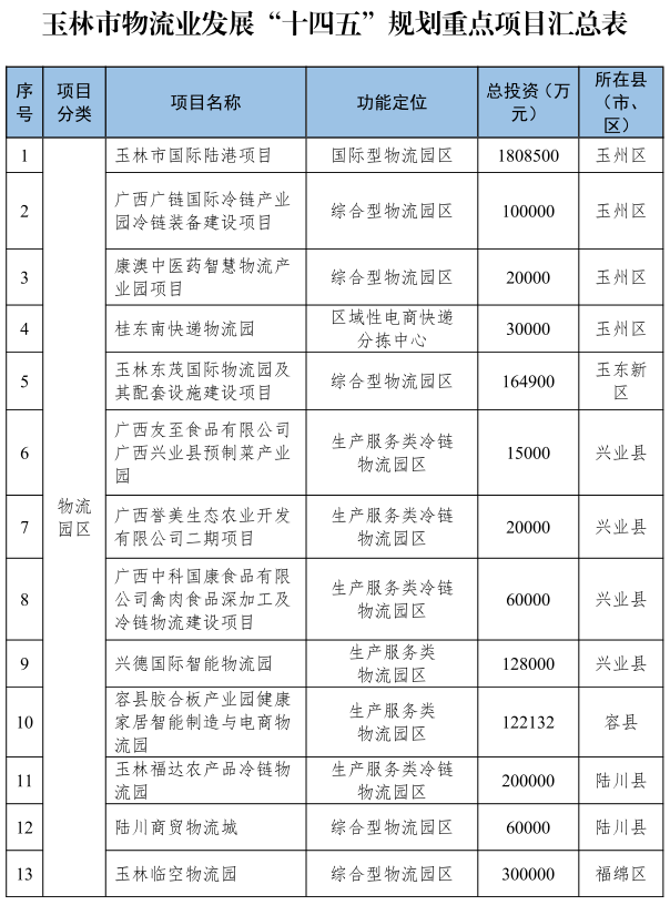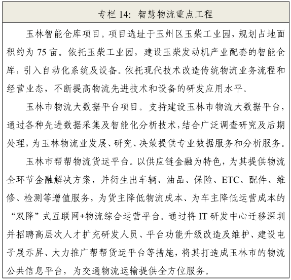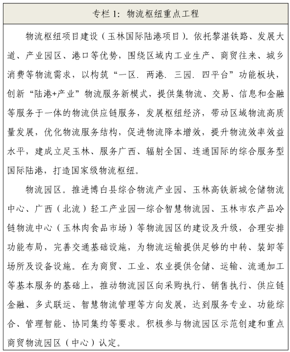 玉林市物流业发展“十四五”规划
