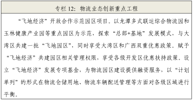 “两湾”融合区域物流中心城市。依托“两湾融合”“湾企入桂”的机会,同步打造与产业发展相配套的物流生态,大力推进“物流企业大湾区总部+玉林基地”“大湾区研发+产业物流+玉林生产”以及“飞地间物流通道串联”等融合发展模式,共建跨区域物流园区。协同培育战略性新兴产业,协同发展特色优势产业,建设围绕产业的物流基础设施与服务。发挥玉林作为北部湾城市群重要节点城市的突出优势,推动广西北部湾经济区和粤港澳大湾区两大国家级城市群战略联动,打造融合两区域的物流中心城市。